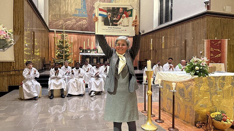 Após a comunhão, a irmã Perpétua foi surpreendida com a apresentação de um vídeo evocativo dos 17 anos da sua missão no Luxemburgo, recordando etapas marcantes do seu serviço pastoral junto das comunidades. Visivelmente emocionada, a religiosa tomou a palavra para agradecer: "Recebi muito de vós e deixei um pouco de mim aqui; por isso, Magnificat, como acabámos de cantar. Continuarei a rezar por vós."