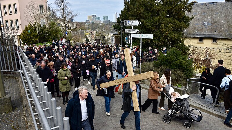 Chaque année, répondant à l’invitation de LuxYouth, la pastorale des jeunes du diocèse, le cardinal Jean-Claude Hollerich, archevêque de Luxembourg, prend la tête de son troupeau pour le mener, station après station, de l’église Saint-Michel à la crypte de la cathédrale.
