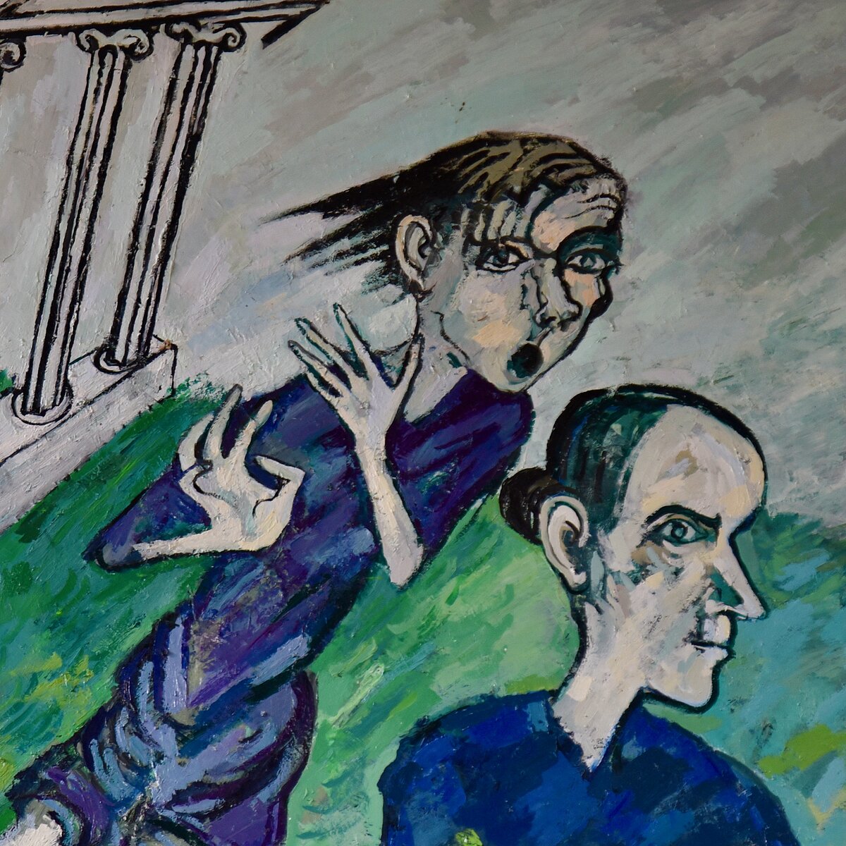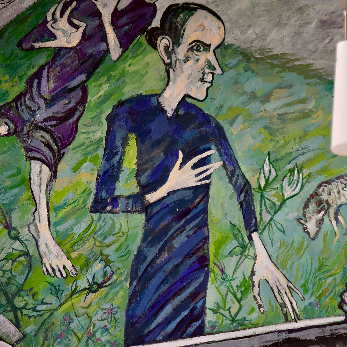 Le Prof. Dr. Dr. Jean Ehret explique que c’est pendant la pandémie que Maxim Kantor a créé la « Chapelle de la Résurrection » : sept tableaux représentant, au centre, le tombeau vide du Ressuscité et les trois Marie, entouré de part et d’autre de saints luttant avec Dieu et Le cherchant. Saint Jérôme à droite, saint Jean sur l’île de Patmos à gauche, Moïse, Jonas, la Cène… Sous chaque tableau, une prédelle, toile de forme horizontale où figure une série de petits sujets en relation avec le thème principal, reprend la construction traditionnelle des retables polyptyque.
