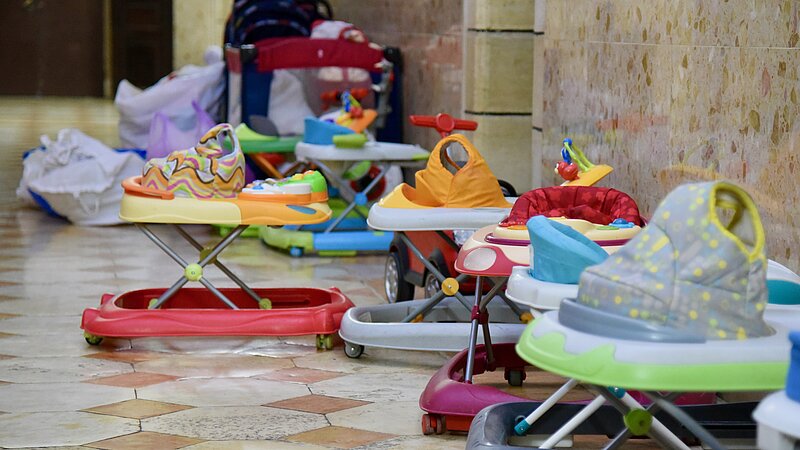 Diese zärtlichen Gefühle waren deutlich zu spüren, als wir einen großen Raum betraten, der in einen Schlafbereich und einen Spielbereich unterteilt war. Auf dieser Seite saßen etwa fünfzehn Kinder auf Kissen im Halbdunkel und schauten sich einen Zeichentrickfilm an. Sofort verlor der Fernsehbildschirm jegliche Anziehungskraft. Besucher sind selten, und unser Erscheinen war für die Kinder eine Ablenkung und ein Grund zur Freude. Nach Covid und dem Angriff vom 7. Oktober 2023 hatte der Waffenstillstand von 2025 in Gaza ein wenig Hoffnung geweckt, doch der Angriff auf den Iran hat den Deckel, der auf der Region lastet, gerade brutal wieder zugeschlagen. Gott allein weiß, wann der nächste Besuch stattfinden kann…